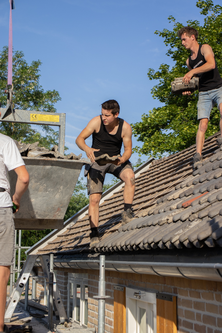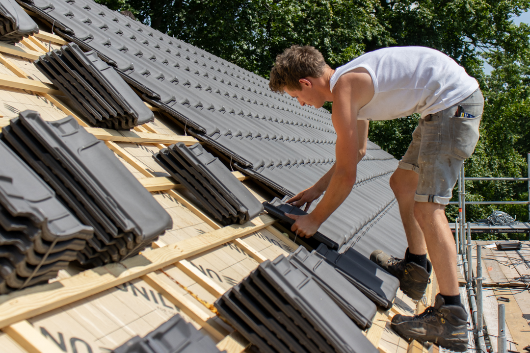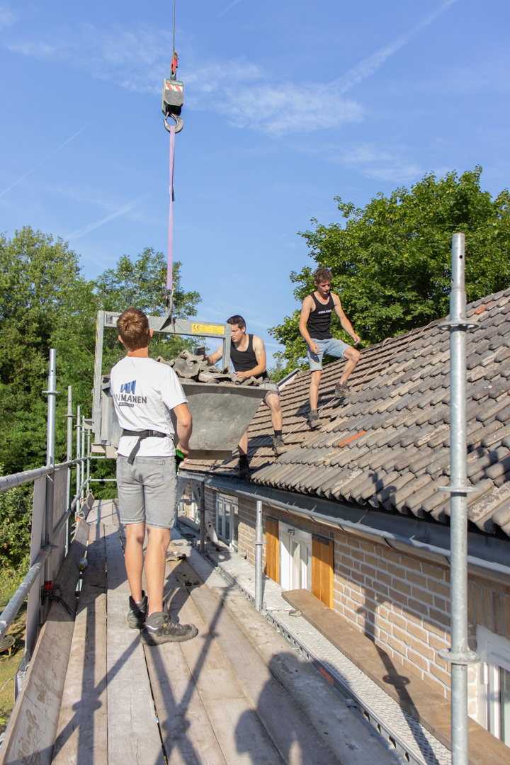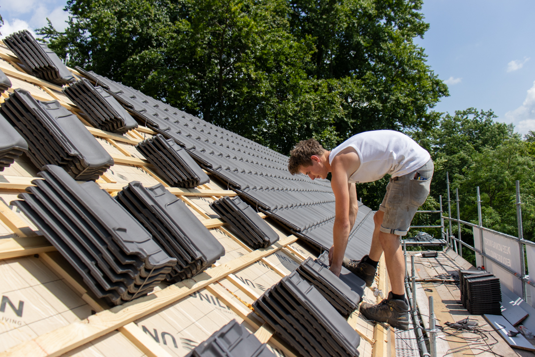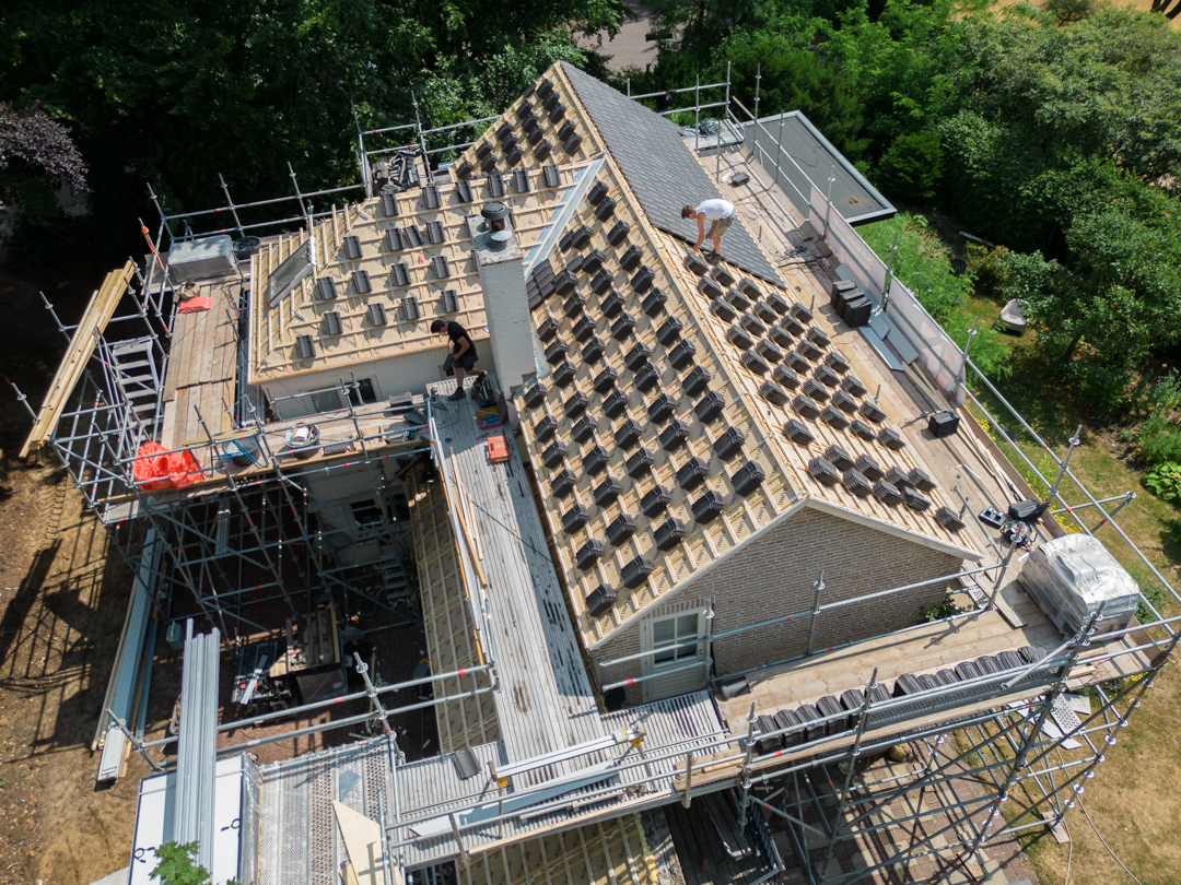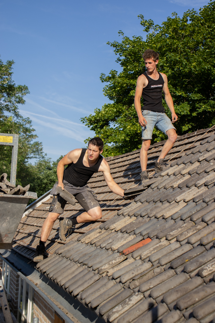 Het complete dak is vernieuwd: isolatie volgens de huidige eisen, nieuwe pannen en goten, en al het lood- en doorvoerwerk rondom schoorstenen hersteld. Met nieuwe zinken goten en regenpijpen is het huis weer lekvrij, warmer en klaar voor jaren.