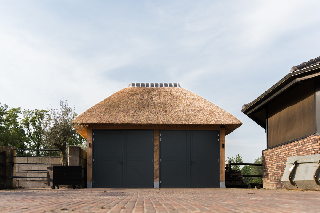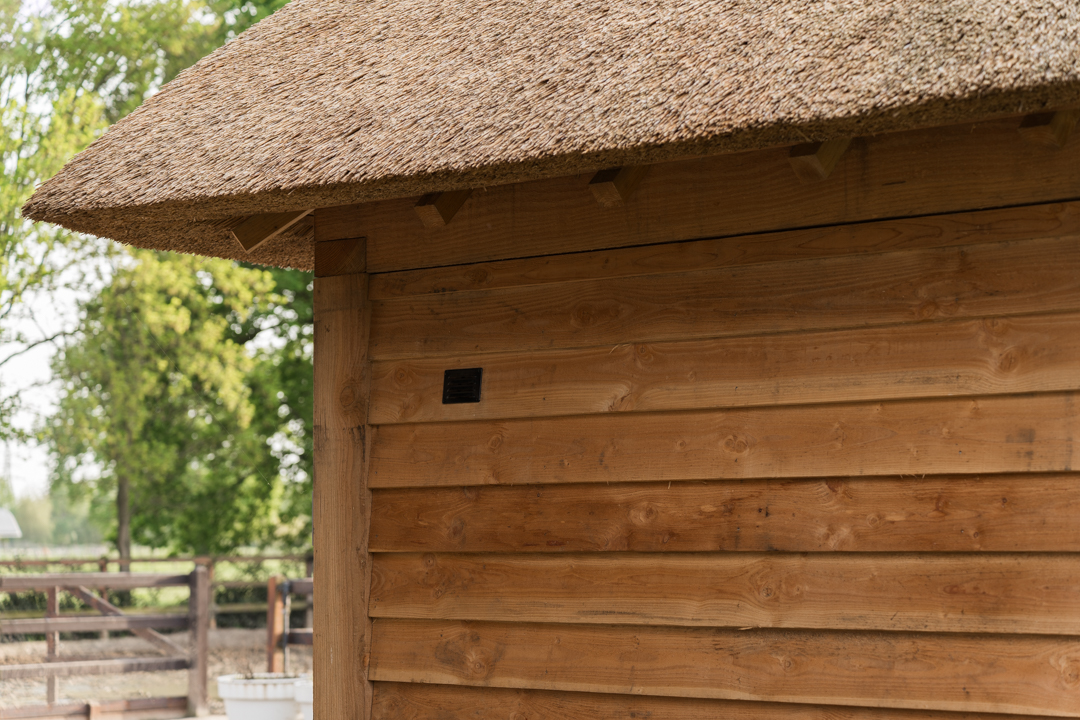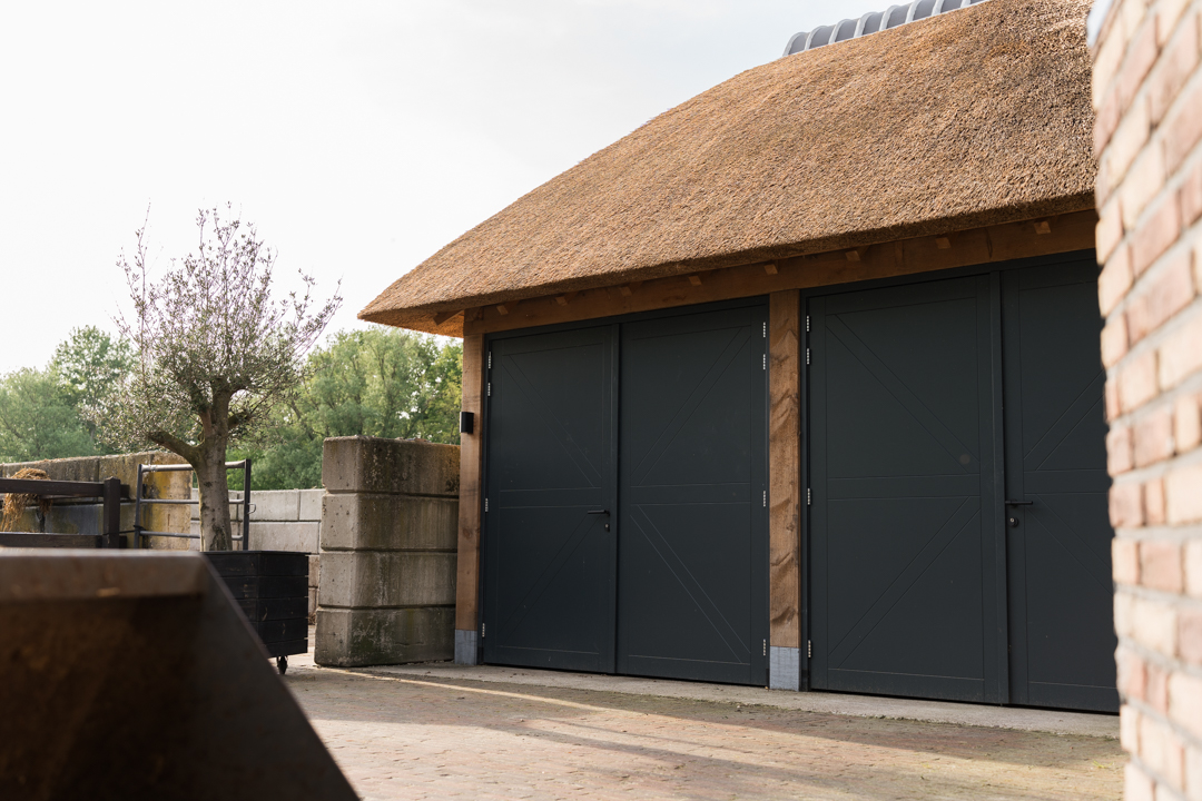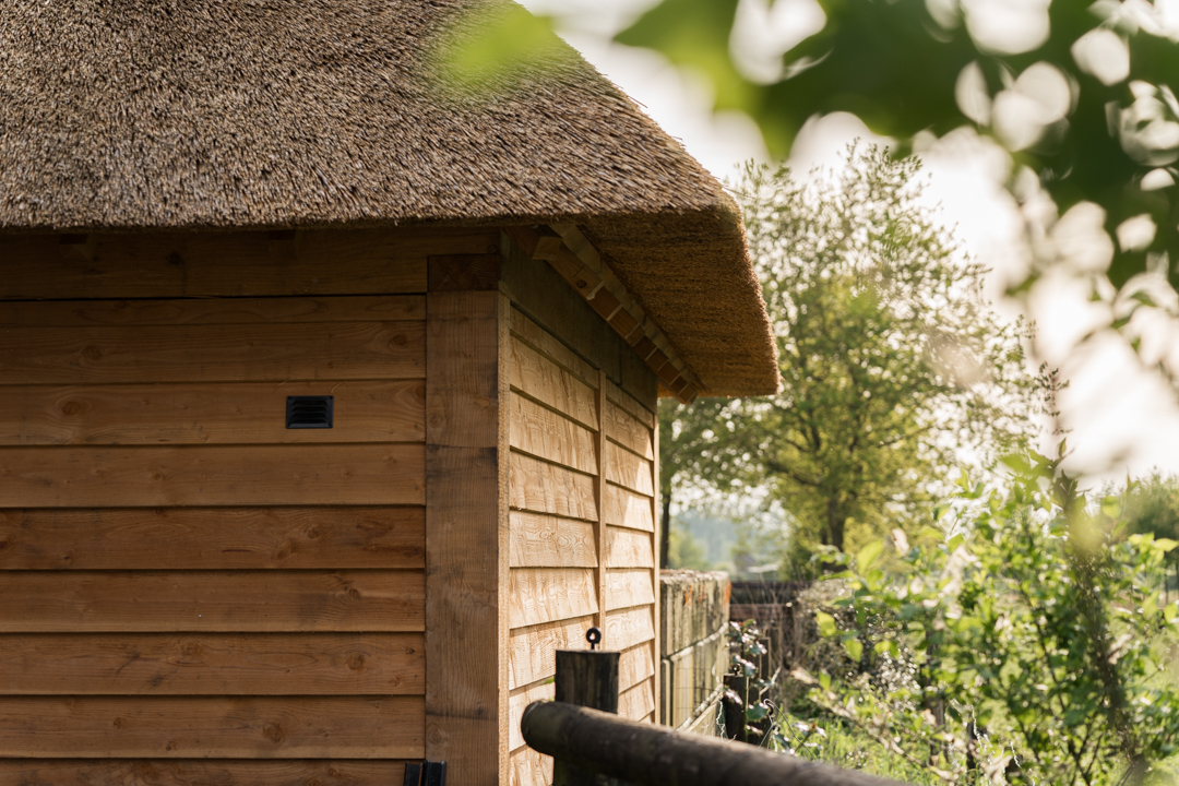 Op één erf bouwden we een praktische prefab schuur voor droge opslag en een kippenhok in dezelfde stijl als de bestaande bebouwing. Materiaal en detaillering sluiten mooi aan op het erf, onderhoud blijft beperkt en het geheel oogt als één geheel.